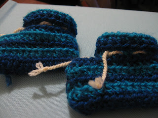 what i was saying was that it's those fiddly little finishing touches that take a project from enjoyable to slightly maddening ;) but it will be worth it! lovely booties, and the blanket looks cozy already.